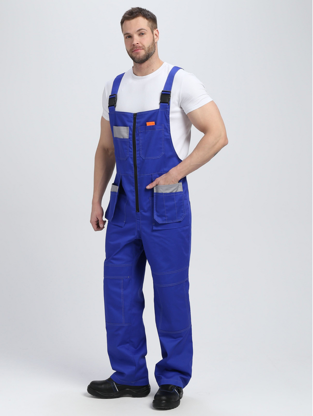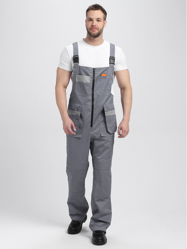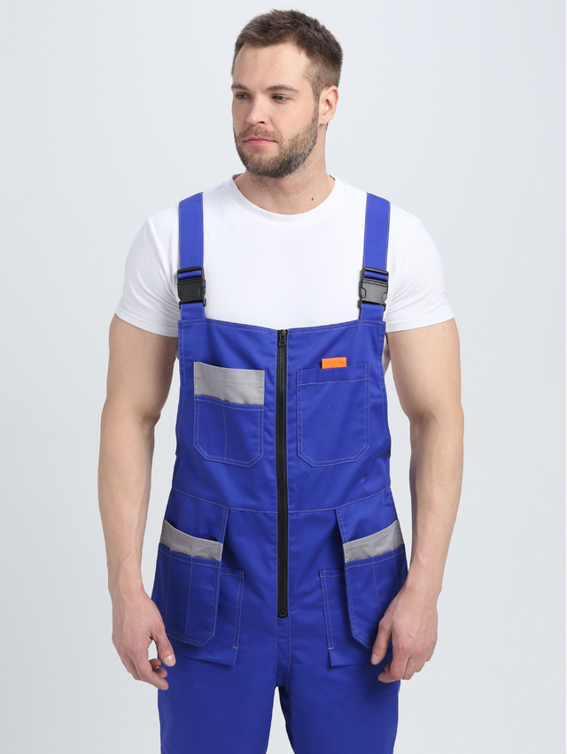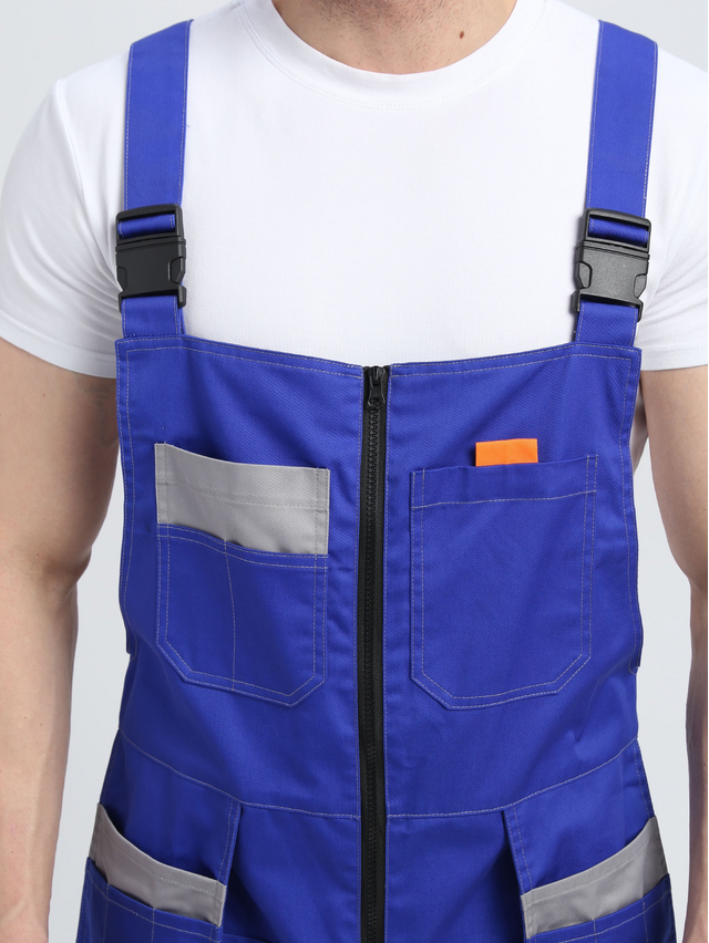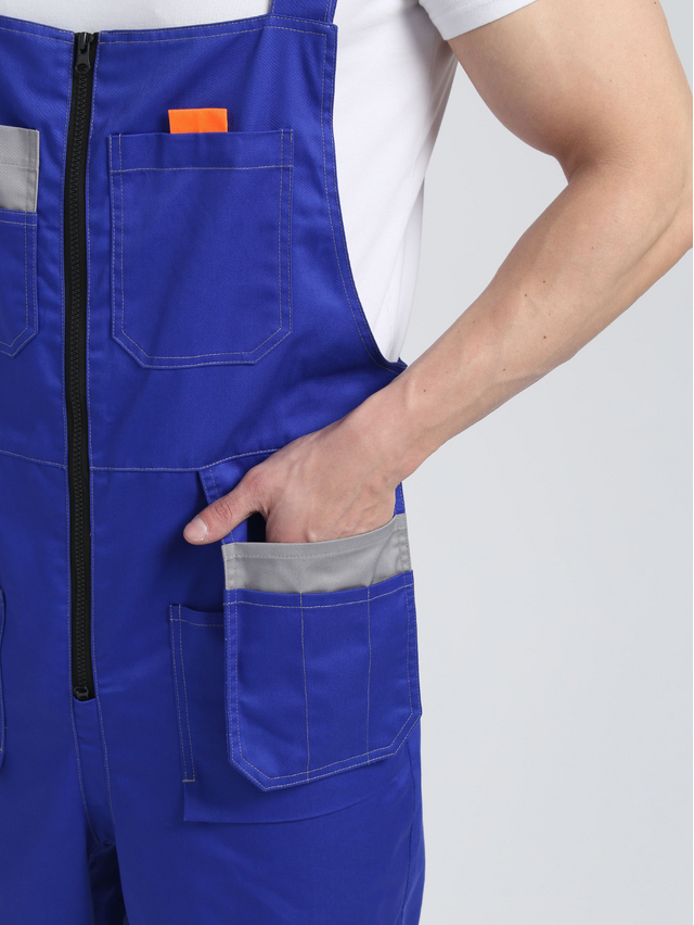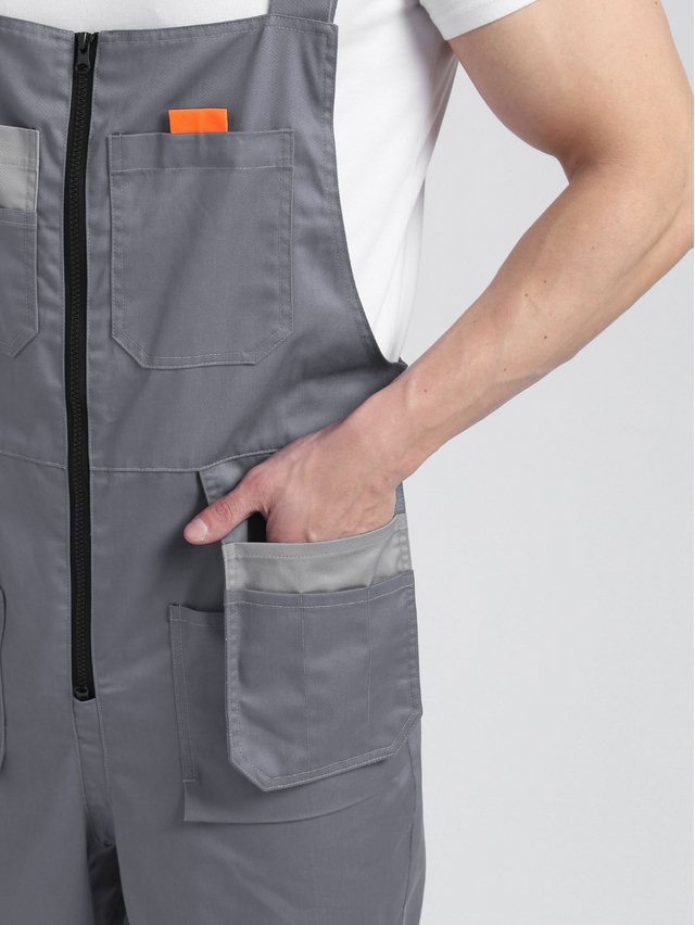 • на полукомбинезоне расположены 11 карманов разного размера и предназначения, в заднем кармане удобно хранить инструменты, а в передние с отлетным механизмом, можно сложить мелкие скобяные изделия, разделив их по сегментам