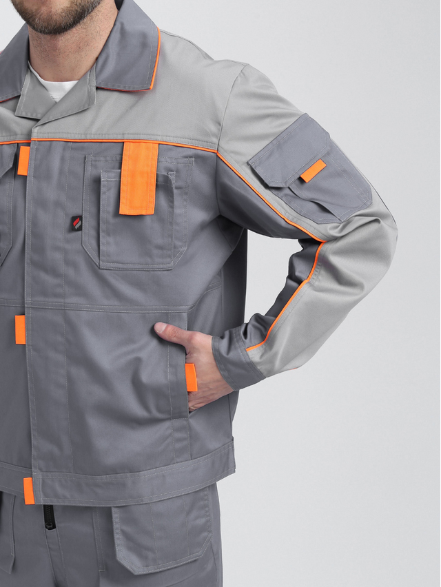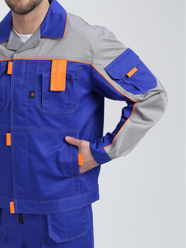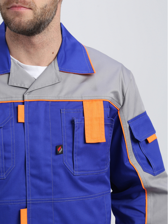 Костюм изготовлен из высокопрочной смесовой ткани. Улучшенная формула износостойкости материала обусловлена оптимальным содержанием хлопка и полиэстера, а так же саржевым переплетением. Использование данной технологии препятствует усадке и деформации материала.