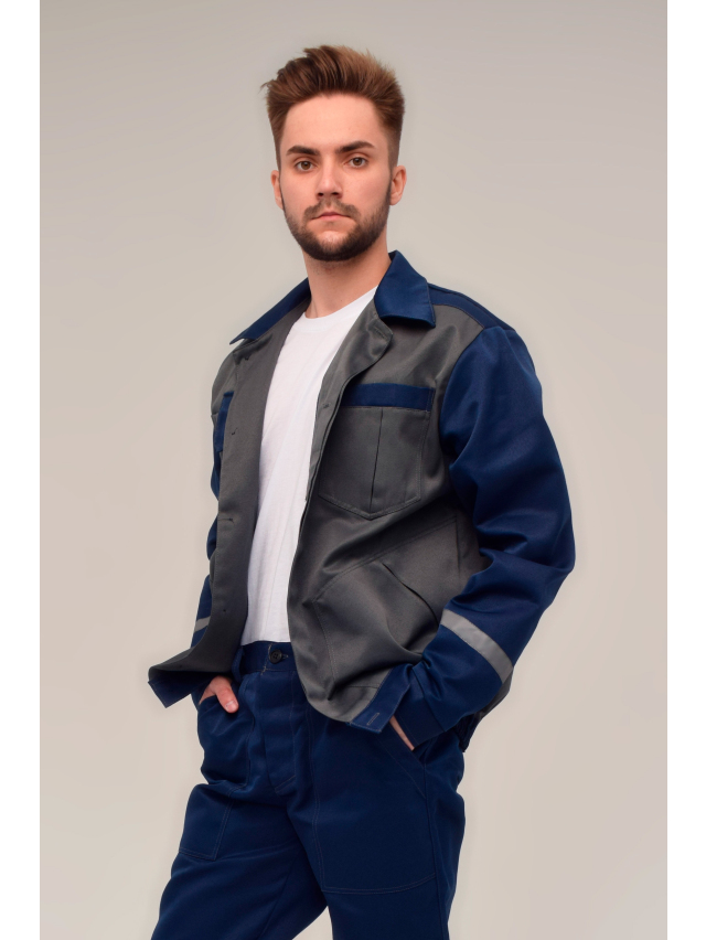 Куртка рабочая прямого силуэта с потайной застежкой на петли и пуговицы.
