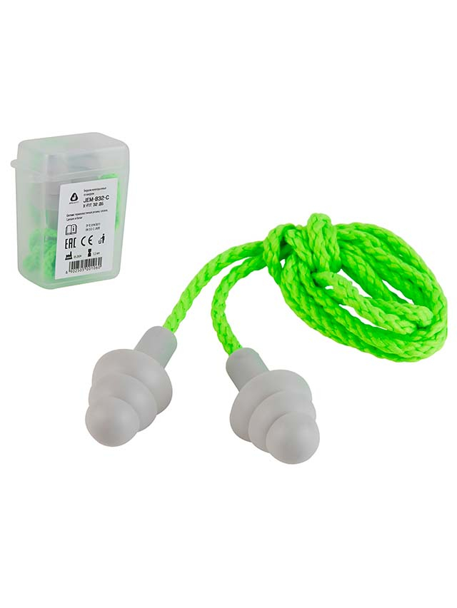 Беруши многоразовые из термопластичной резины X-Fit 32дБ с соединительным шнуром в пластиковом боксе, хлопковый шнур.